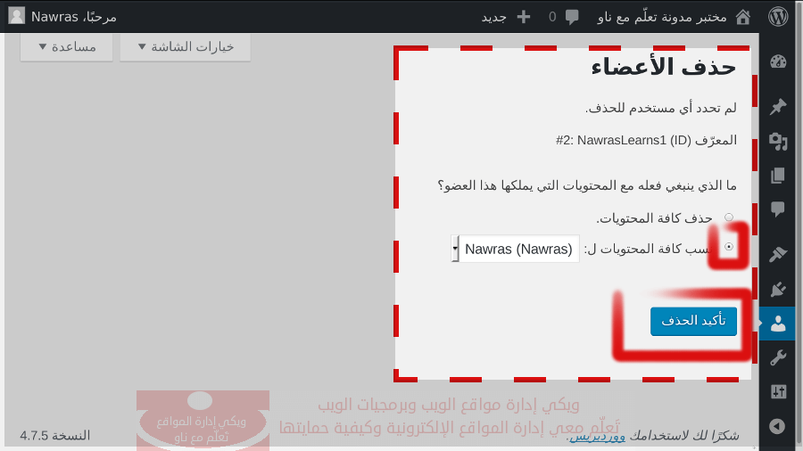 5- قم بتأكيد الحذف بالنقر على *تأكيد الحذف *