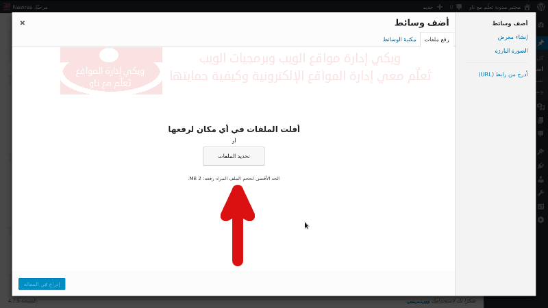 لإضافة أي صورة قم بالنقر على * اضف ملفات وسائط * فوق مستطيل تنسيق النص. ستظهر نافذة تطلب منك إدراج صورة جديدة.