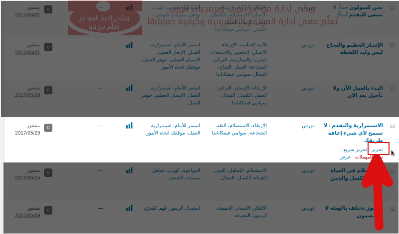 2- حرك مؤشر الفأرة عند المقال الذي تريد تحريره.