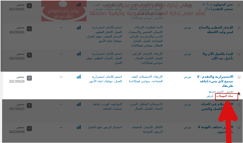 2- حرك مؤشر الفأرة عند المقال الذي تريد حذفه.