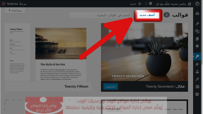 بشكل افتراضي: سيتم تفعيل القالب الافتراضي فور تثبيت ووردبريس. إذا أردت جعل شكل الموقع مميزاً وأكثر جاذبية، يجب تثبيت قالب آخر.