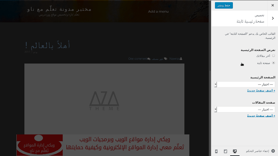 يجب إنشاء الصفحة الرئيسية التي تريد قبل تحديد الخيار * صفحة رئيسية ثابتة *