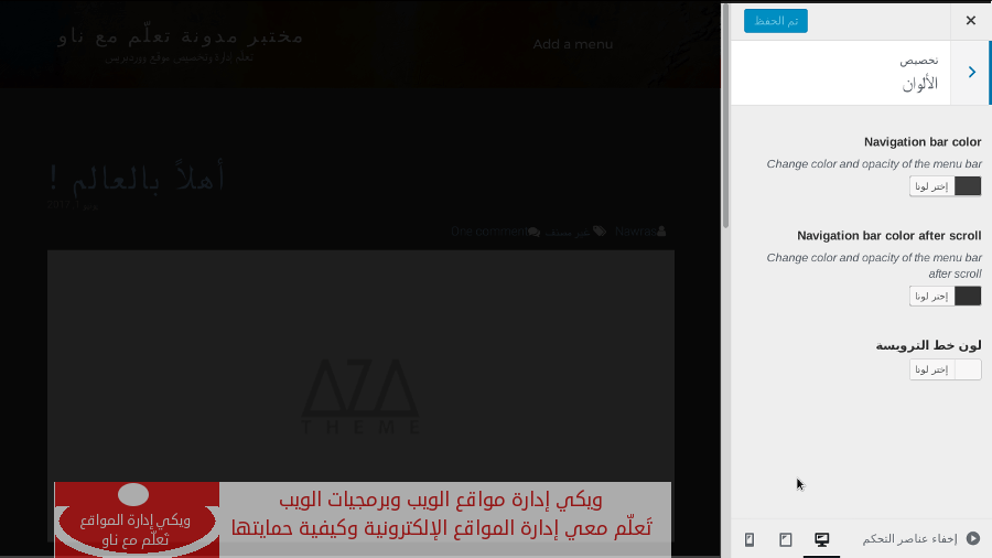 يمكنك تغيير ألوان الموقع حسب ذوقك من خلال النقر على خيار ألوان في صندوق تخصيص الموقع.