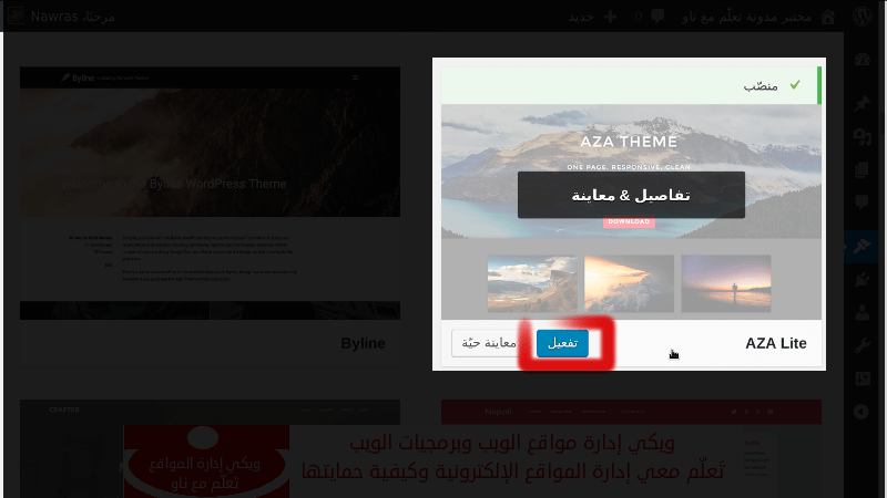 تنصيب القالب يعني تثبيت القالب على الموقع، بينما تفعيل القالب يعني استخدام القالب ليعبر عن المظهر الأساسي لموقعك.