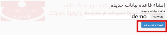 قم بكتابة اسم قاعدة البيانات التي تريد إنشاءها، تأكّد عدم وجود قاعدة بيانات بنفس الاسم، ثم انقر على * إنشاء قاعدة بيانات *