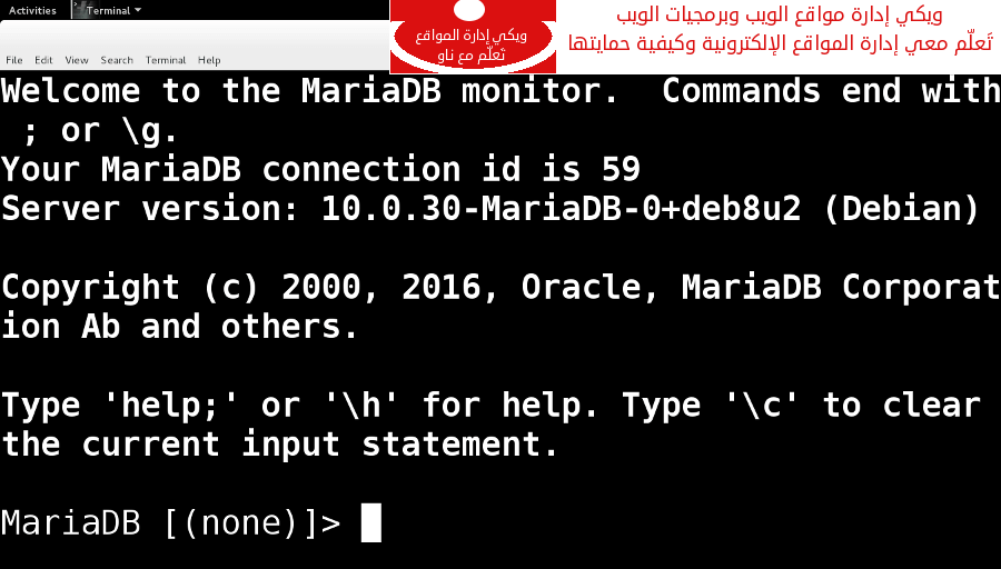 في الأساس: تتم إدارة قواعد البيانات من خلال سطر الأوامر كما يظهر في الصورة التالية: